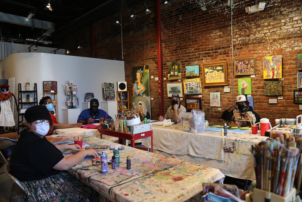 Our artists are invited to the gallery every Wednesday and Thursday to work on their art and develop skills while in fellowship with other artists. We share a meal at the gallery during open studio days.